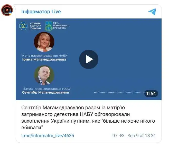 Магамедрасулов ​​разом із матір’ю затриманого детектива НАБУ обговорювали захоплення України путіним, яке “більше не хоче нікого вбивати”.