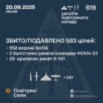 За уточненою інформацією, вчора загарбники завдали по території України двох ракетних ударів двома ракетами та 78 авіаційних ударів, скинувши 154 керовані авіаційні бомби. Крім цього, залучили для ураження 6137 дронів-камікадзе та здійснили 4752 обстріли позицій наших військ і населених пунктів, зокрема 95 – з реактивних систем залпового вогню.