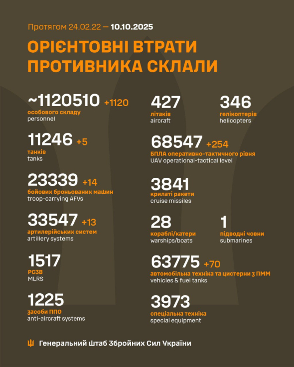 Втрати РФ в Україні сягнули 1 120 510. Минулої доби ЗСУ знищили 1120 окупантів,...