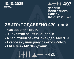 У ніч проти 10 жовтня Росія здійснила комбінований удар по території України, застосувавши сотні...