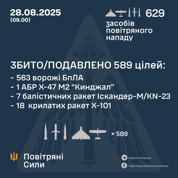 У ніч проти 28 серпня противник завдав масованого удару по території України із застосуванням...