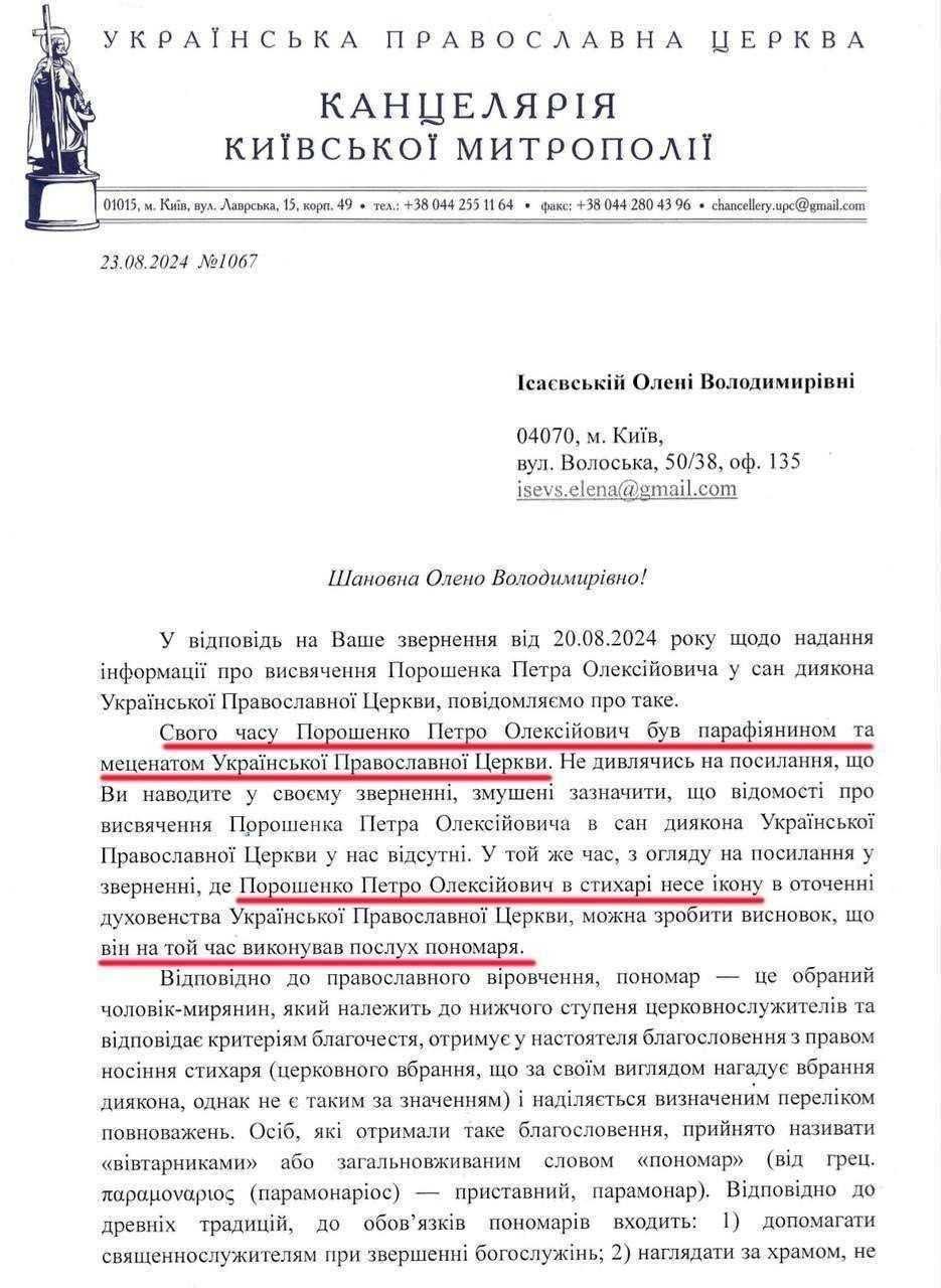 “І Янукович, і Азаров – колишні керівники Порошенка (працював в їх урядах міністром) – вдавали із себе глибоко віруючих людей, водили дружбу з головним попом Московії Кірілом і колекціонували ікони. Тому Порошенко і служив в московській церкві для особистої кар’єри. У його архівах є спільні фото з очільниками МП, а в інтернеті – зображення, де він у церковному вбранні несе ікону. Це ще раз доводить, що для Порошенка віра завжди була інструментом політичної кар’єри”, – пише Олещук.