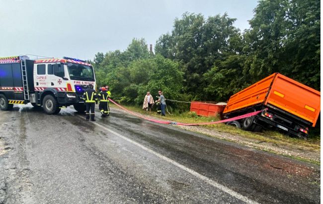 “9 липня о 16:13 на автодорозі Р-43 Тернопіль-Збараж-Ланівці, біля села Синява Збаразької громади, сталася аварія за участі легкового та вантажного автомобілів”, – пишуть у ДСНС.